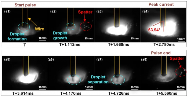 圖6 高速相機觀察到的電弧行為,(a1-a8) I=160A