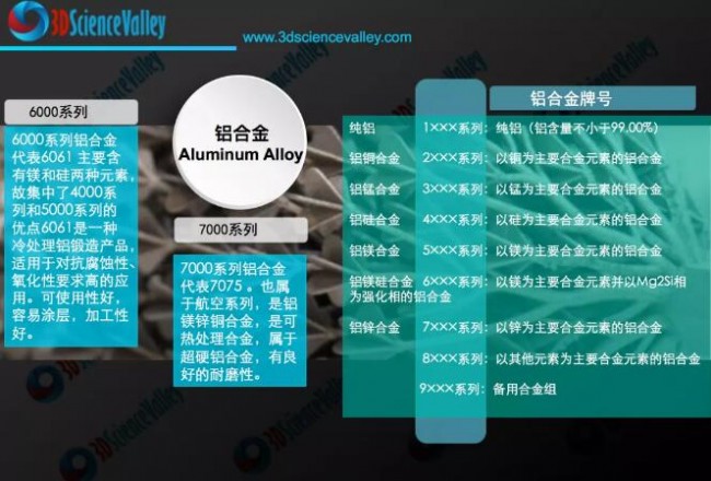 雖然比鈦合金更弱,但鋁合金具有良好的強度重量比,是一種常見的(和成熟的)航空航天材料選擇。根據(jù)3D科學谷的了解,增材制造零件生產(chǎn)中使用的鋁合金包括基于合金元素的 1xxx、2xxx、4xxx、6xxx、7xxx 系列,其中許多是使用固態(tài)增材制造工藝制造的,可用于 AFS-D 和 UAM 工藝來加工。